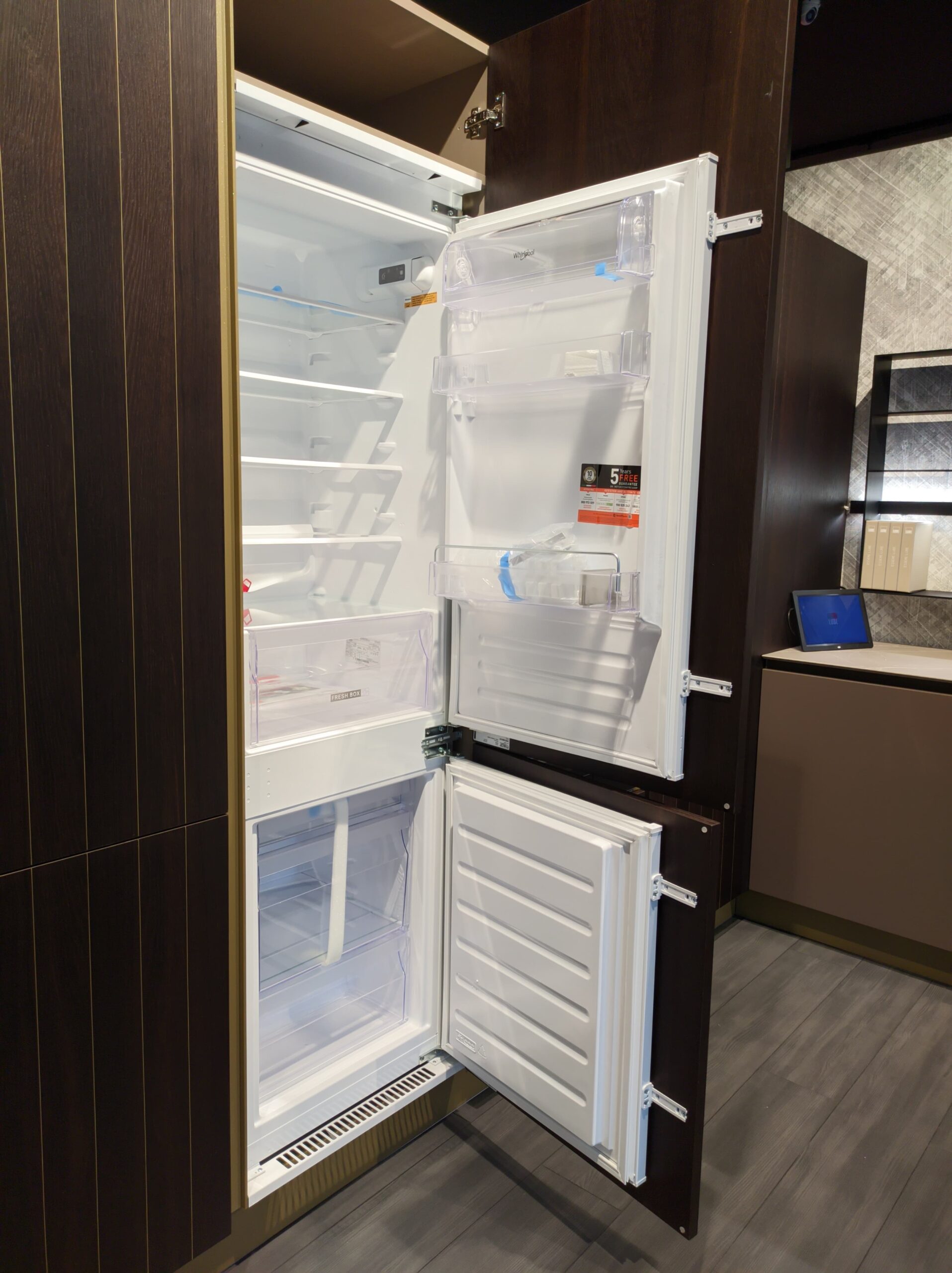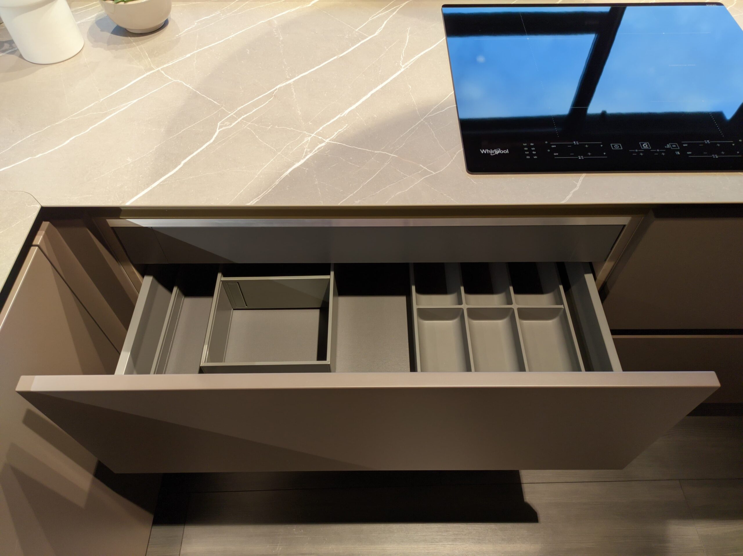 • Echipamente de la Whirlpool: Bucătăria vine complet echipată cu electrocasnice de înaltă calitate de la Whirlpool, incluzând cuptor electric, plită cu inducție, combină frigorifică și mașină de spălat vase.