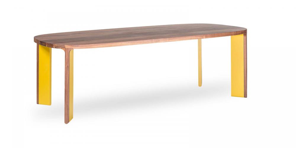 Masa de dining Acro-bat 002 este formată din patru picioare și un blat din lemn. Fiecare picior este realizat în două secțiuni: cea internă, care este întotdeauna vopsita, și cea externă. Blatul are o formă ovală. Dimensiuni disponibile: 130 - 300 cm.