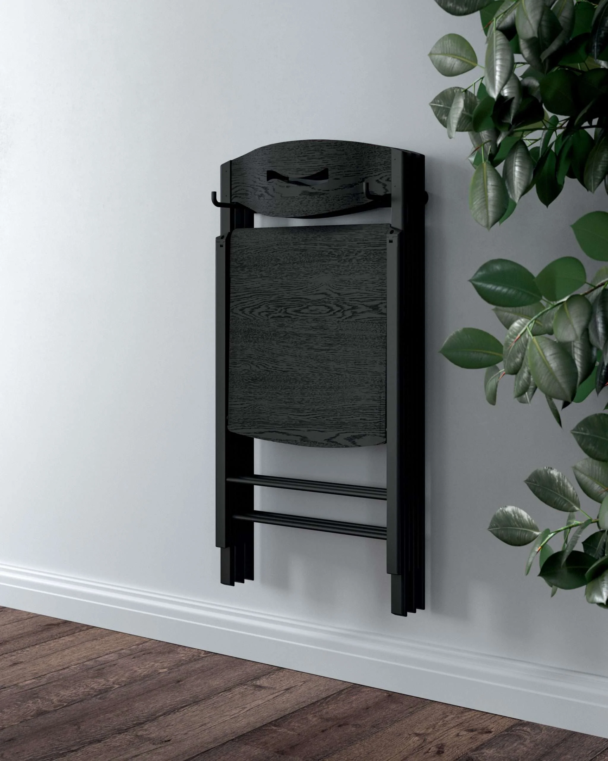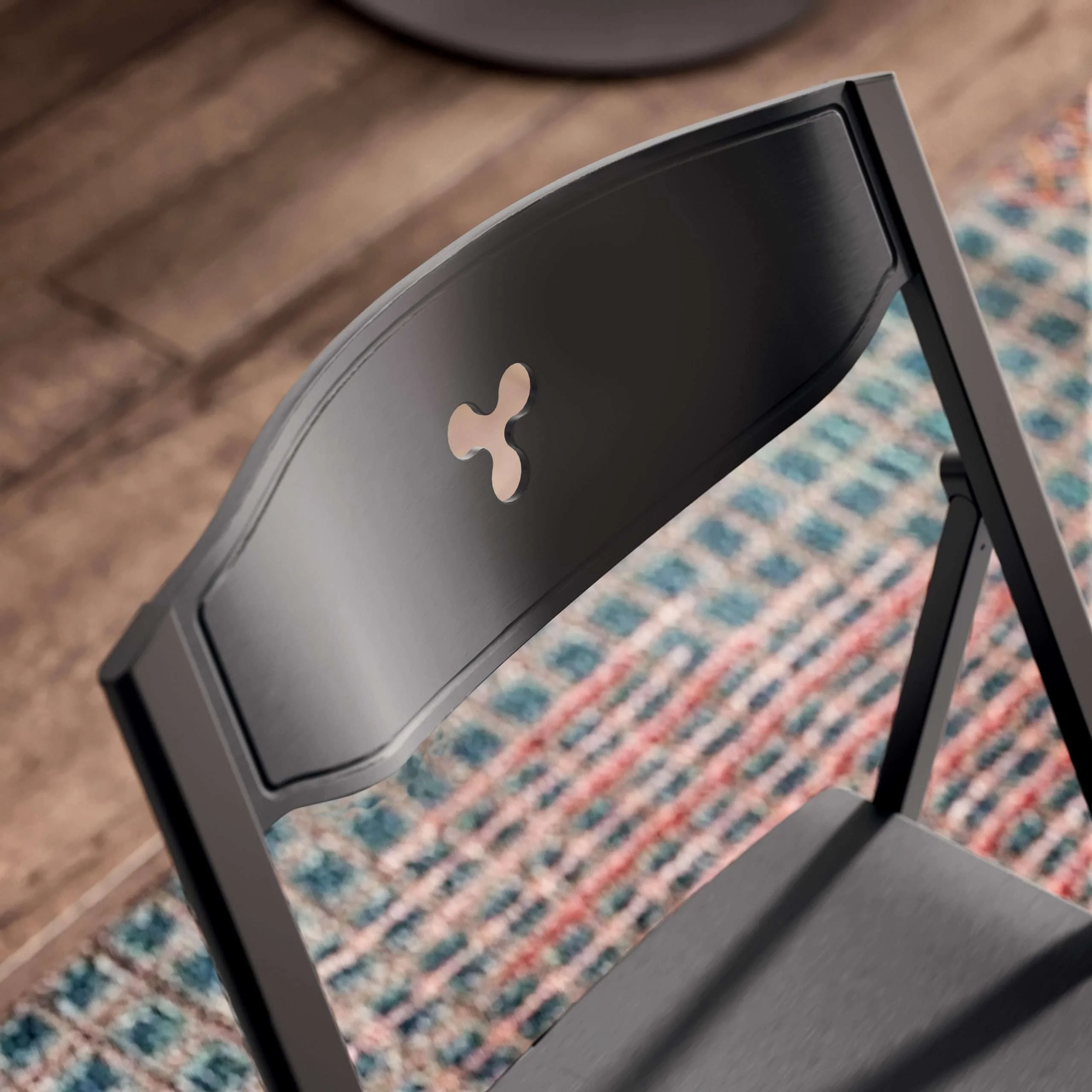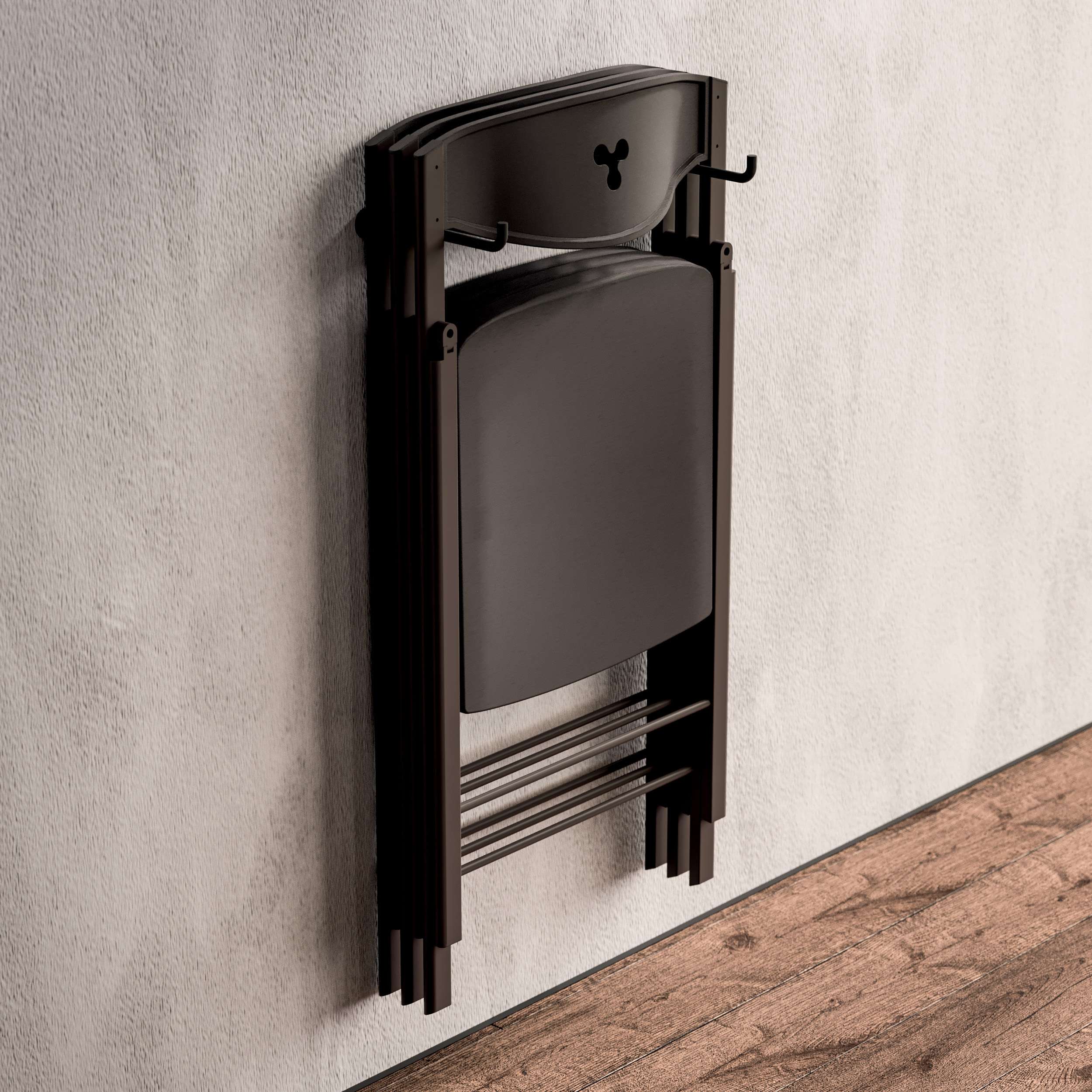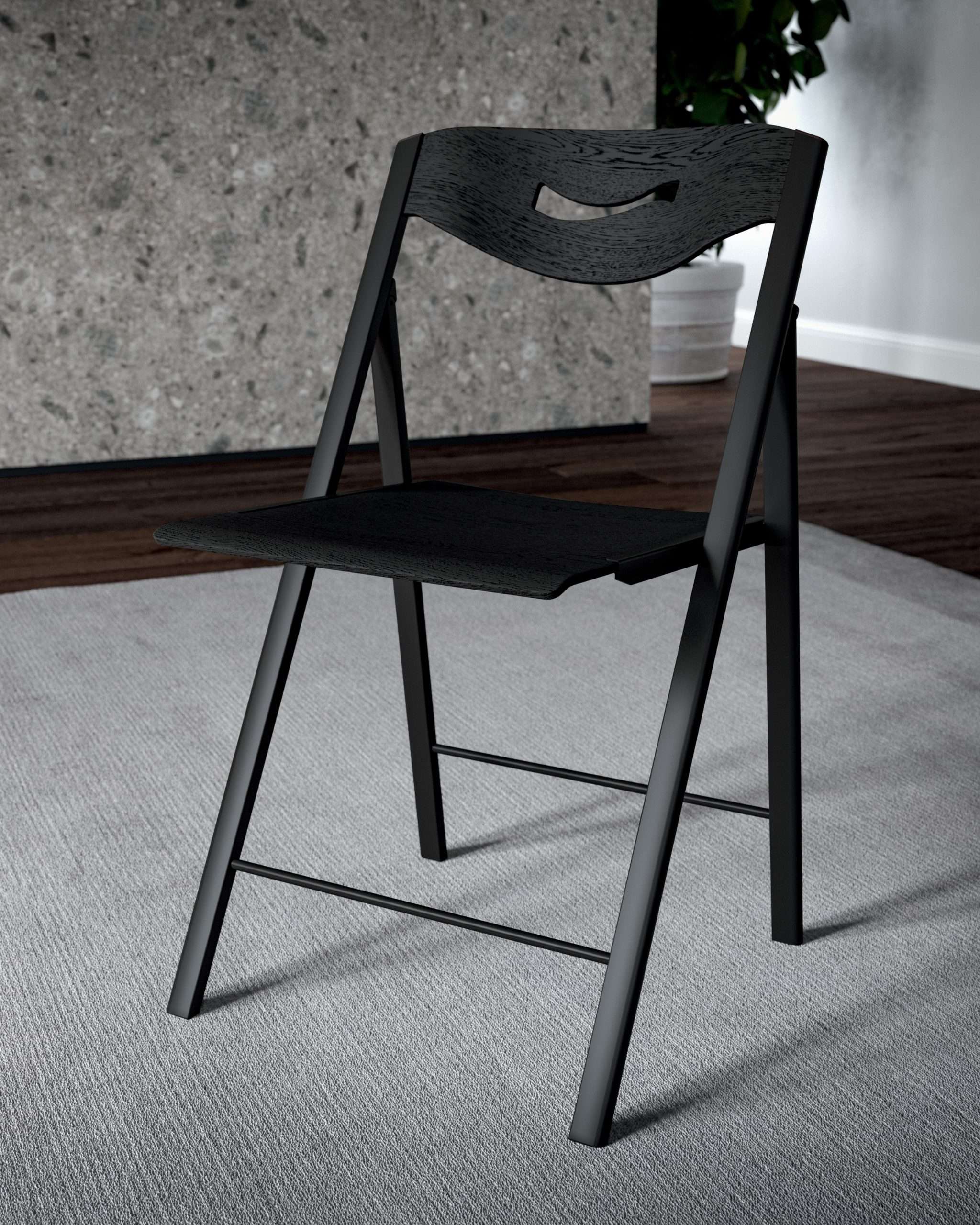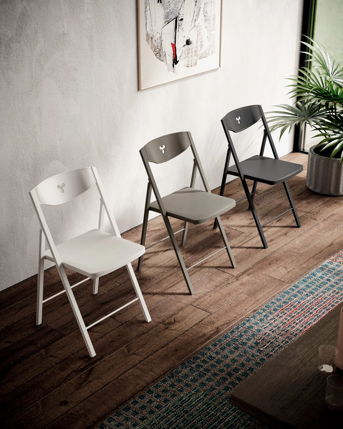 Scaun pliabil cu un design proaspăt și pur, cu structură metalică și șezut și spătar din polipropilenă sau din lemn prețios. Stilul său simplu îl face perfect pentru bucătăria și livingul casual.