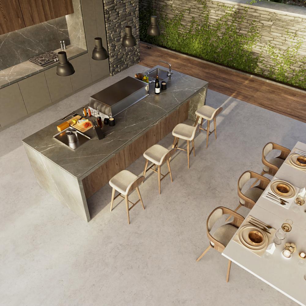 Vă prezentăm o gamă de bucătării outdoor de la Minimal Ceramic. Experimentează un nou mod de a trăi cu bucătăriile noastre de exterior, unde granițele dintre spațiile interioare și exterioare se estompează fără efort. Bucătăriile noastre oferă fundalul perfect pentru momente de neuitat, toate cu confortul și comoditatea unei bucătării de interior.