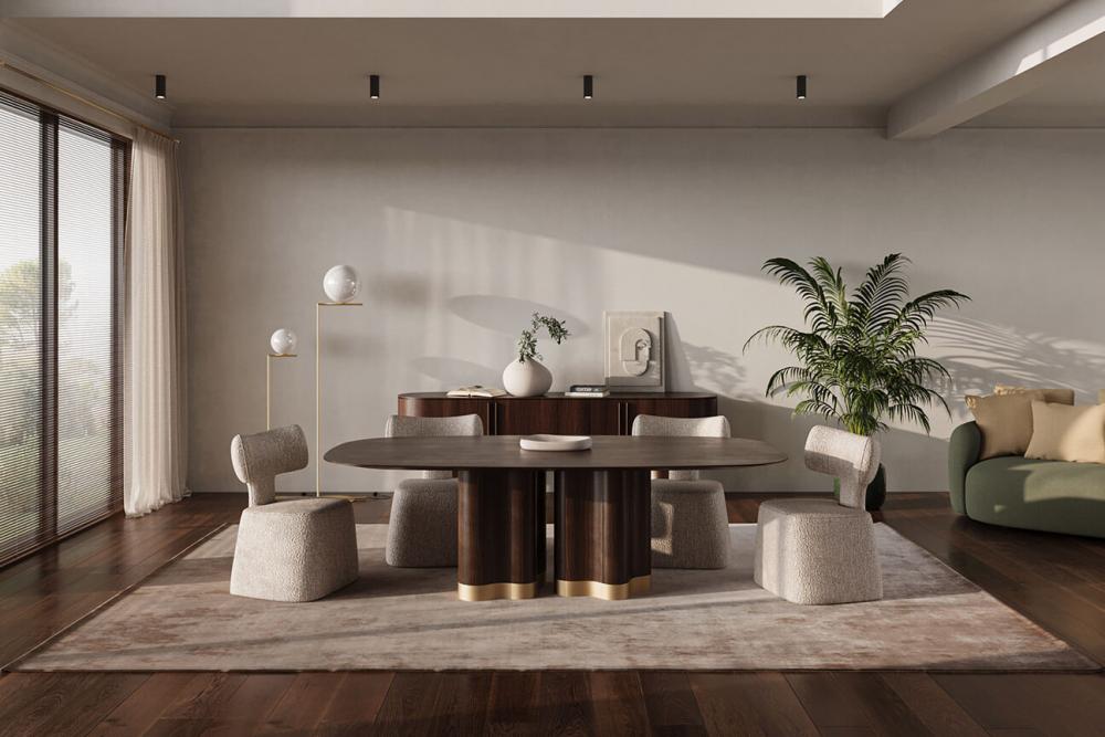 Masa de dining Zephyr este o piesă atemporală de eleganță, unde materia se supune poeziei vântului, transformând orice spațiu într-un refugiu de armonie pură. Nu este doar o masă — este o experiență, o emoție, o suflare de frumusețe contemporană. Disponibilă în toate tipurile de lemn și în mărimi de la 200 la 300 cm.