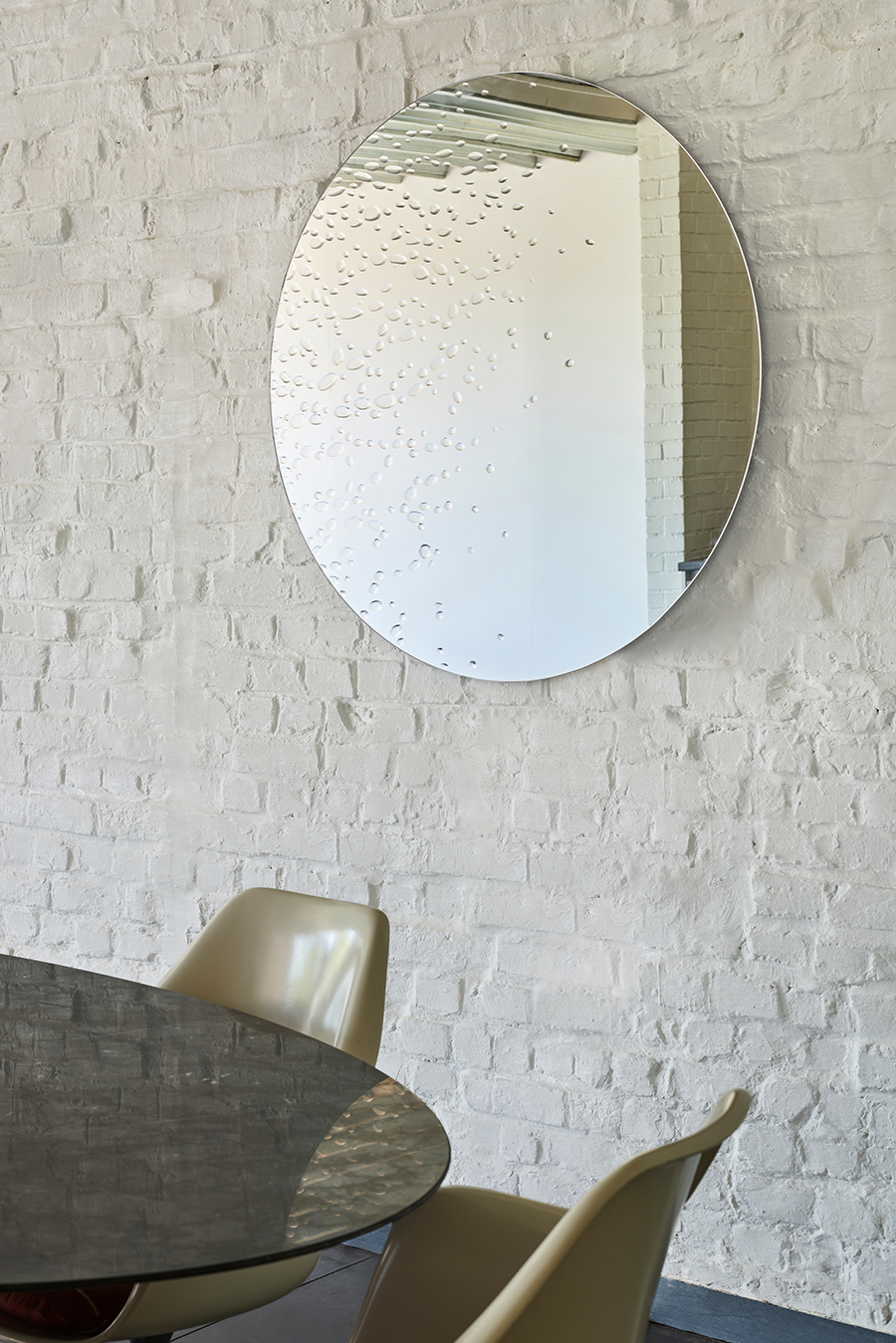 Picăturile de rouă intrigă, atrag și te captează. Acestea sunt aplicate manual, transformând fiecare Matin într-o oglindă de design unică. Matin nu este doar o oglindă poetică. Dispune de o suspensie specială de 360, permițându-vă să rotiți picăturile în orice direcție doriți.