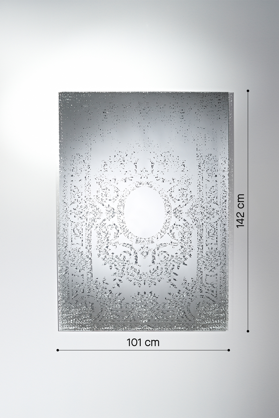 OGLINDA OXIDE L se joacă cu contrastele. Este un covor vechi, uzat, readus la viață într-o înfățișare nouă și modernă. Un joc al vechiului cu noul, al luminii cu umbra, al transparenței cu reflexia perfectă. Deși oglinda are integrate multe spații transparente din sticlă pentru a crea un model frumos și pentru a lăsa vizibil peretele din spate, functionalitatea oglinzii rămâne intactă. Oglinda Oxide este disponibilă și într-o versiune mai mică.
